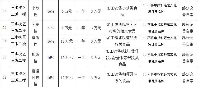 3、基于伙食层次多元化以及保持适度竞争和共生共赢的需要,合作商在中标后,必须接受招标人对经营档口(含店铺)、申报项目及品类的调整,否则投标人为无效中标人。未经招标人批准确认的项目及品种均不得经营。