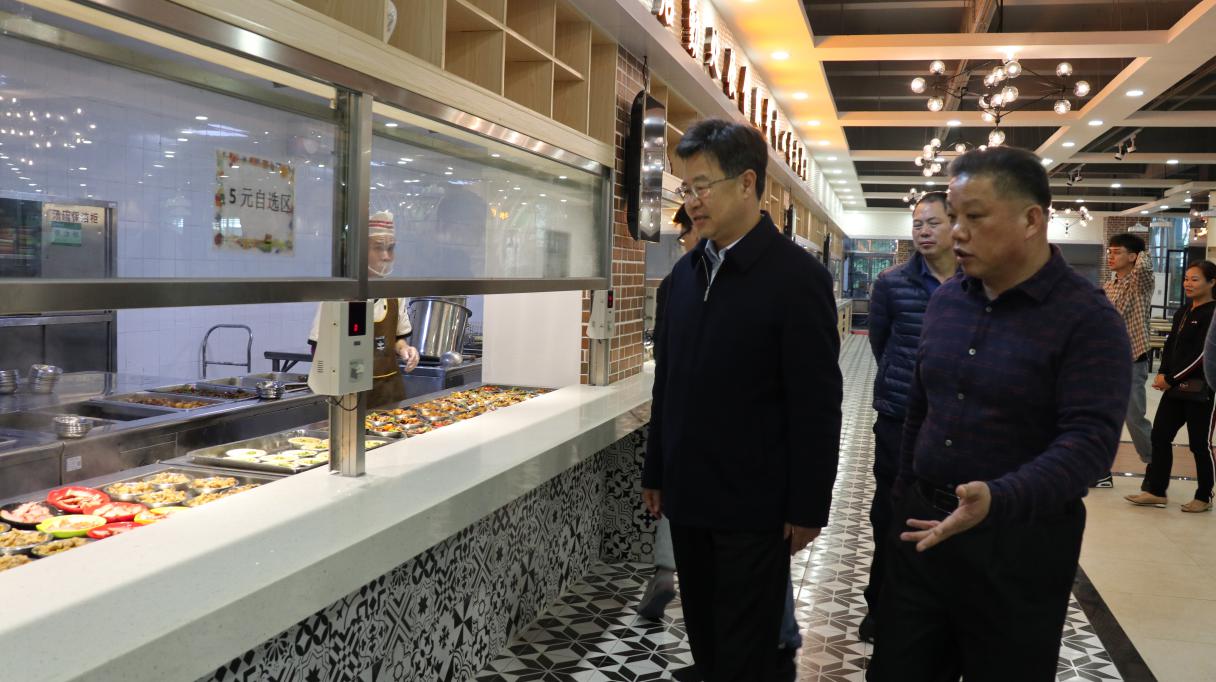 首先,陈副校长一行到办公室听取曾主任关于员工到岗情况,假期工作完成情况等各项工作汇报后,指出要重点关注食品安全问题,并逐步推进“六T”管理工作,同时,陈副校长强调,饮食中心要规范管理,严格落实监督机制,做好流感等传染病的防控工作。随后,一行人到各食堂进行了深入细致的检查,仔细察看操作间、仓库、售卖窗口等。