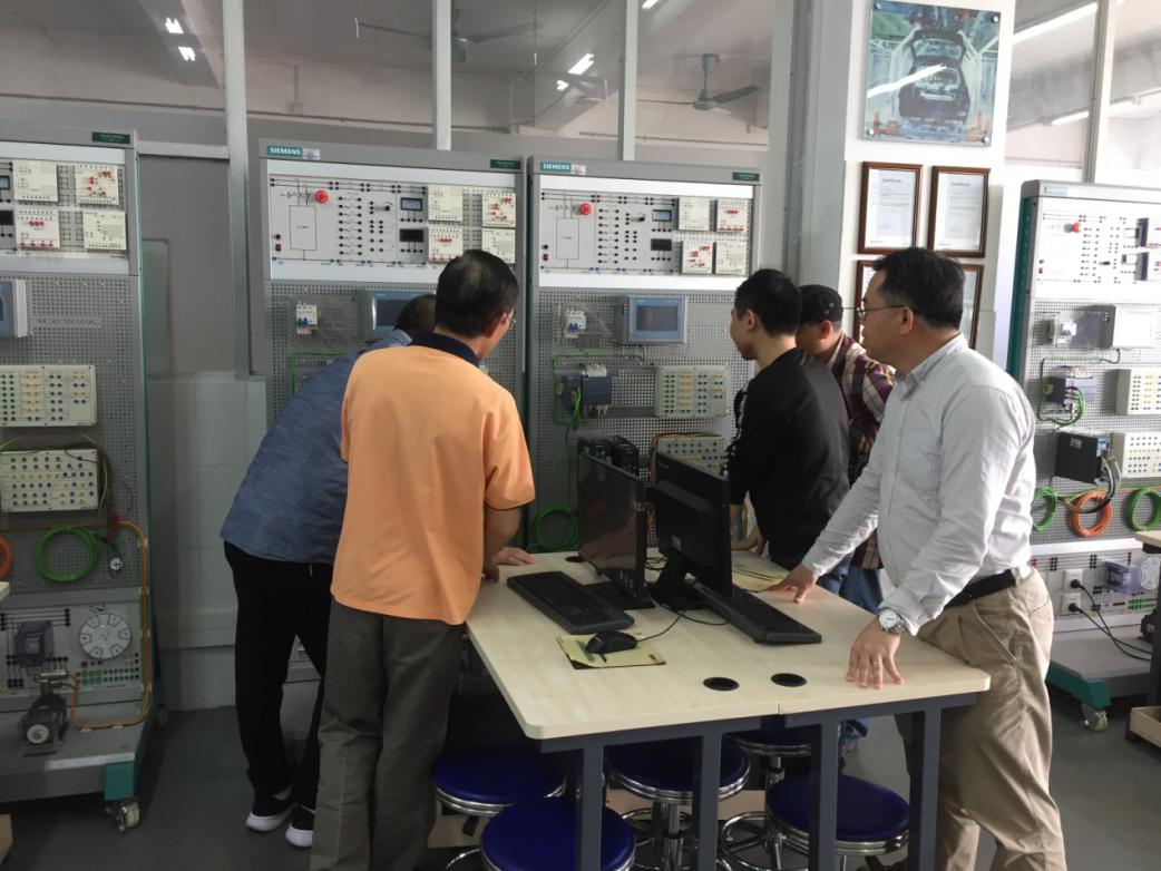 会上,支部党员首先学习了习近平总书记系列重要讲话之:《第五批全国干部学习培训教材序言》、《以习近平同志为核心的党中央引领全党力戒形式主义官僚主义综述》;随后,听取支部书记传达3月27日校党委理论学习中心组(扩大)学习会上“全国人大、政协第十三届全国委员会第二次会议精神解读”和校党委书记黄晓波提出的两点要求。接着,支部邀请了广东轻工业技师学院机电一体化技术高级教师莫思豪对支部党员和后勤电工进行《电工安全用电和触电急救》和《三相异步电机Y-△降压启动》专业知识培训。另外,3月30日支部还专门组织支部党员和后勤电工到广东轻工业技师学院东校区实训楼311实验室进行《西门子S7-1200PLC编程》及《西门子G120变频调速》的操作实践培训。