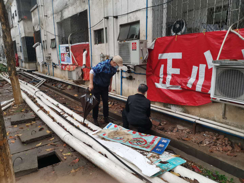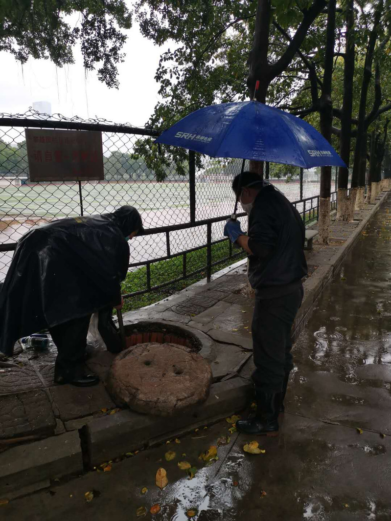 明胜m88官网维修中心在巡查中发现问题或接到维修任务时,他们总是第一时间赶到现场,查找问题,积极应对。受疫情影响,合作公司维修人员尚未复工,维修中心员工积极想办法,能自己动手处理的,不管脏累,马上去找去购买维修材料,亲自动手维修;自已处理不了的,多方联系其他公司,尽快进行修复。2月15日上午,工作人员巡查时发现实验楼排水管、教学楼后足球场边下水道及平房员工宿舍排污管堵塞,接到报告后,维修中心员工立即赶赴现场组织维修,因维修任务较复杂,维修中心经多方联系,最终找到一合作公司,于当日14:30开始维修工作。为使疏通工作顺利及时完成,冯耀杰同志冒着大雨在现场指挥工作,经过二个多小时作业,顺利完成管道疏通任务。