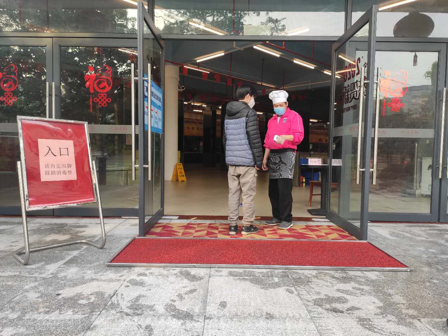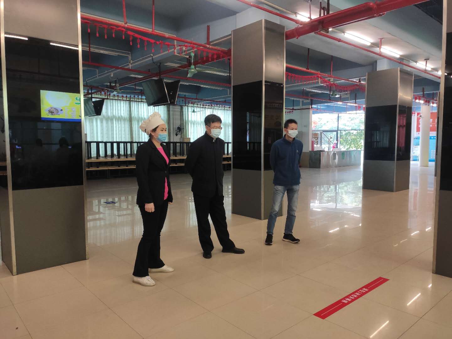 首先,陈国栋副校长就疫情期间,食堂安排专人为就餐人员测体温、间隔一米排队购餐、并在正门增置消毒池、摆放就餐温馨提示、小知识等一系列疫情防控举措表示肯定和赞许,并要求在师生返校后,需结合实际情况充分考虑用餐人流以及售卖方式,避免用餐师生聚集造成感染,切实保障师生员工的餐饮安全。