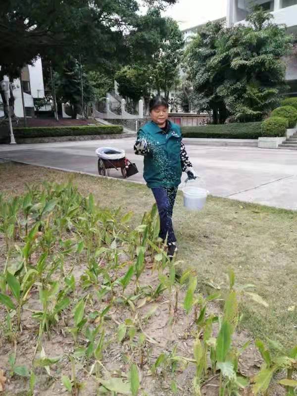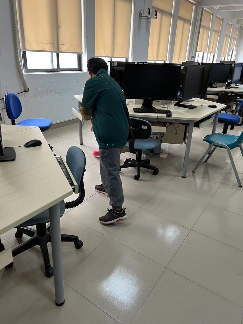 保洁员仔细打扫课室