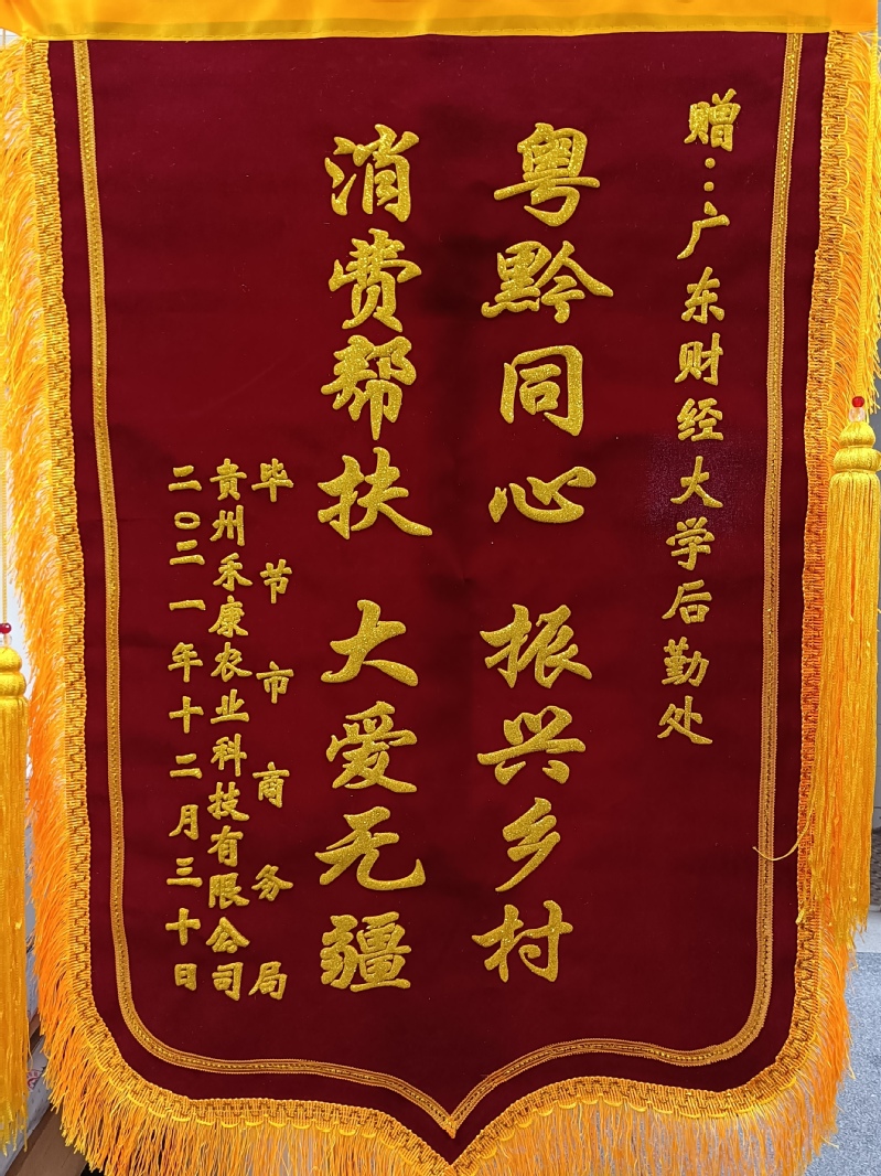 1月10日下午,贵州禾康农业科技有限公司施永福一行专程到明胜m88官网明胜m88官网。施永福真诚感谢明胜m88官网对毕节市推进乡村振兴工作的消费帮扶和大力支持,并代表毕节市商务局及贵州禾康农业科技有限公司向学校赠送“粤黔同心 振兴乡村 消费帮扶 大爱无疆”的锦旗。明胜m88官网明胜m88官网副处长苏土交接过锦旗,感谢毕节市商务局及贵州禾康农业科技有限公司对学校消费扶贫工作的肯定。