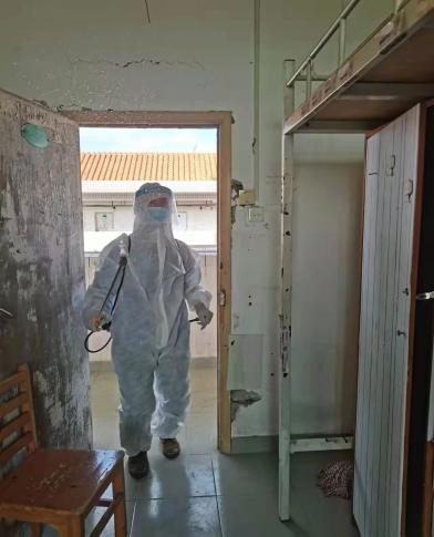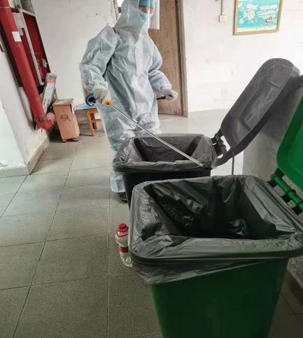 李园(7-8号楼)作为学生观察区域。按照要求,该楼层保洁每天分三次收取隔离房间放在门外的垃圾并在收取之前对垃圾袋周边进行消杀,对区域内的走廊、扶手做四次消杀。