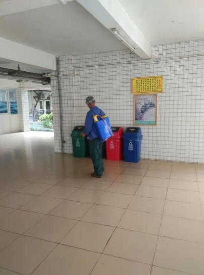 物业工作人员每日定时对楼宇的走廊过道、卫生间、电梯间、日常生活设施等公共区域进行清洁消毒,同时对垃圾收集设施等关键部位定期进行清扫消毒,为在校师生营造安全卫生的生活环境。