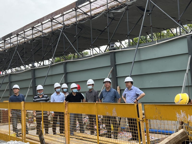 2022年5月9日下午,校党委书记郑贤操首先前往明胜m88官网广东现代服务业产教融合综合实验实训中心项目工地进行实地检查,重点对施工临时用电、工地消防、外墙装饰高空作业、建筑天面防水进行了检查;随后前往北区体育综合馆项目、第33栋学生宿舍项目工地进行检查,详细了解了施工安全通道、外脚手架搭设、幕墙安装、模板支架搭设、塔吊使用、基坑监测、临边防护、建筑材料安全堆放等相关情况。