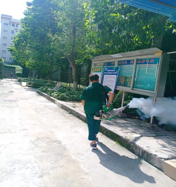 夏季,正是‘四害’的生殖繁衍高峰季节,为了有效控制‘四害’密度,减少虫媒传染病的发生,保障校区师生的身体健康,我公司对校区垃圾箱、绿化地、阴沟、公共场所进行统一灭蚊喷洒。