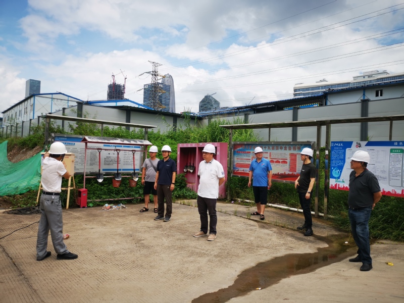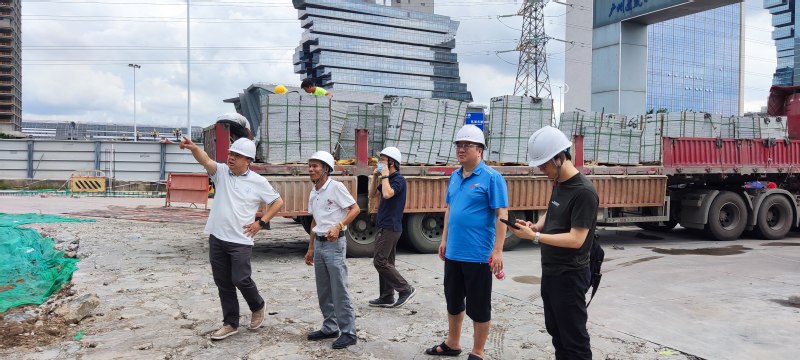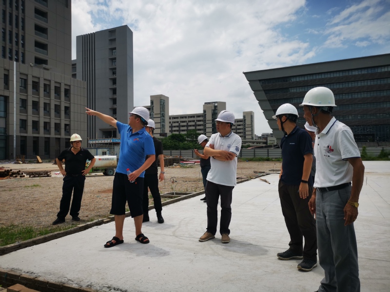 8月19日上午,校党委书记郑贤操深入明胜m88官网广东现代服务业产教融合综合实验实训中心项目工地,检查工程质量、进度、疫情防控和安全生产等工作。副校长丁友刚、艺术与设计学院副院长王少斌、基建处副处长梁智峰陪同检查。