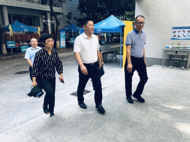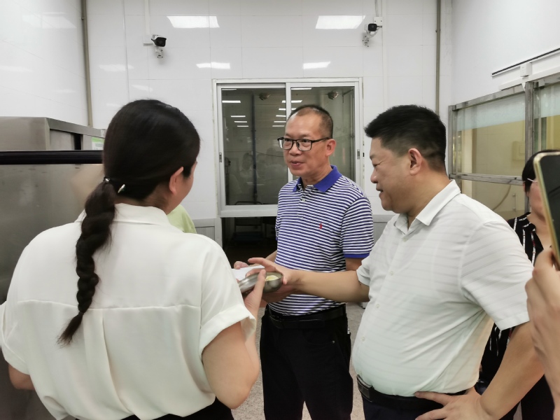 刘祖华每到一处,详细了解后勤保障开学准备落实情况,查看了迎新工作现场“后勤服务站”的设立情况,抽查了学生宿舍清洁卫生及设备检修维护的质量,询问了食堂安全检查及供餐食材准备情况,了解了常态化疫情防控措施及观察区房间的使用管理情况。检查过程中,刘祖华对暑假期间明胜m88官网所做的工作和取得的成绩给予了充分肯定,代表学校对顶风冒雨、坚守在工作一线的后勤员工和物业人员表示亲切的慰问和诚挚的感谢。
