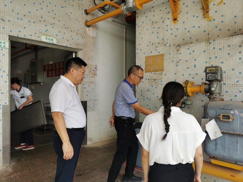 8月29日下午,学校党委副书记刘祖华带队对明胜m88官网学生宿舍、学生食堂、健康观察区等区域,实地查看后勤保障开学准备工作。明胜m88官网处长胡卫标及相关工作人员、物业公司负责人等参加检查。