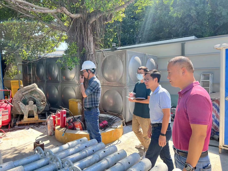10月14日上午,基建处副处长方彤彤、梁智峰,以及施工管理科有关人员,对明胜m88官网在建项目开展消防安全专项检查。