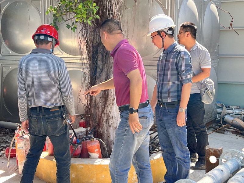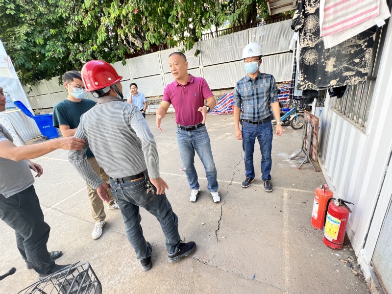 方彤彤、梁智峰一行先后检查了第33栋学生宿舍项目、体育综合馆项目、产教融合综合实验实训中心项目,认真听取了施工单位负责人关于消防安全措施落实情况介绍,重点检查了工人宿舍、厨房等区域,对灭火箱、灭火器、厨房明火操作台、厨房通风设施、消防疏散通道等消防安全设施进行了隐患排查,对存在问题的地方要求施工单位立即进行整改。