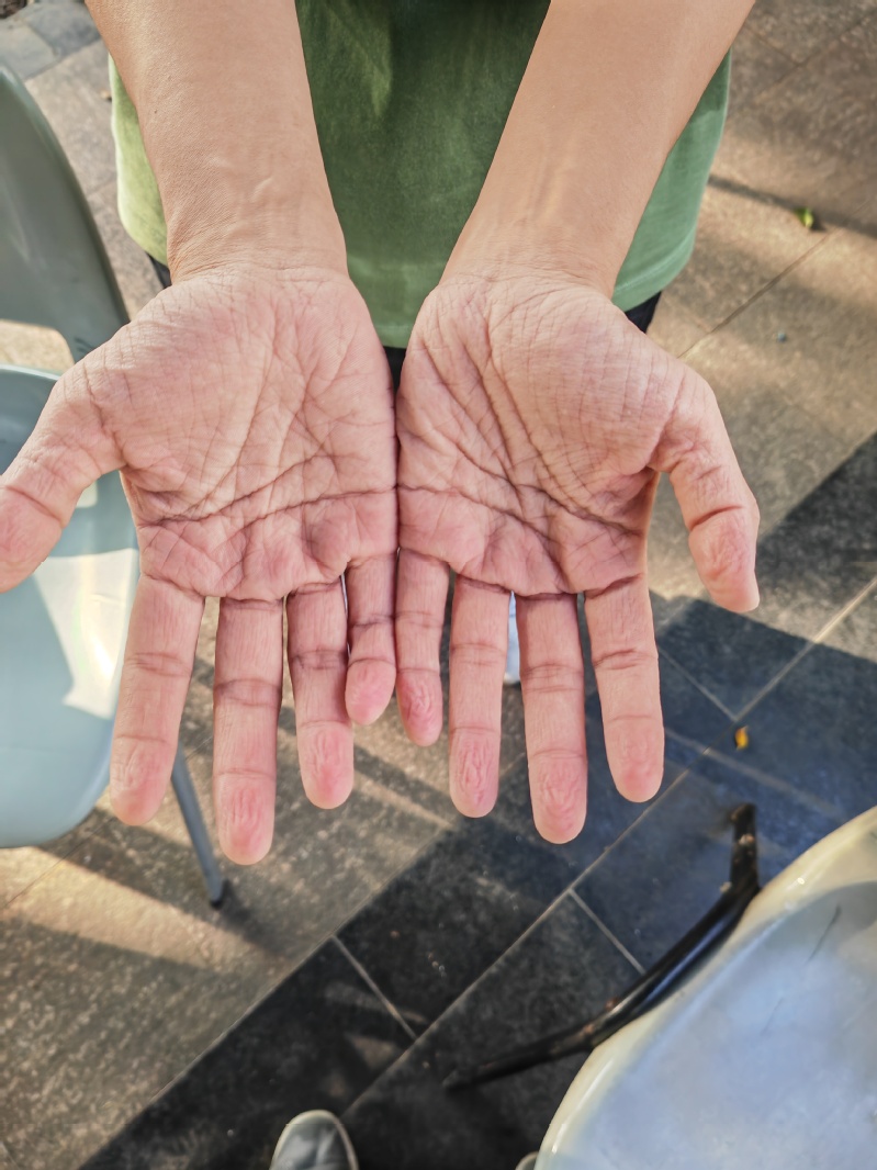 (脱下手套的双手)