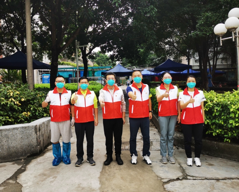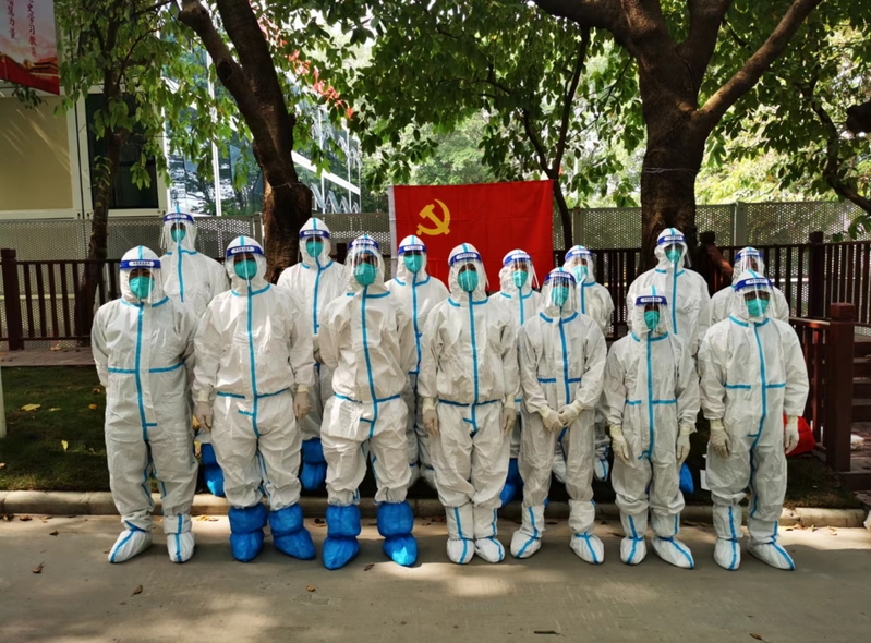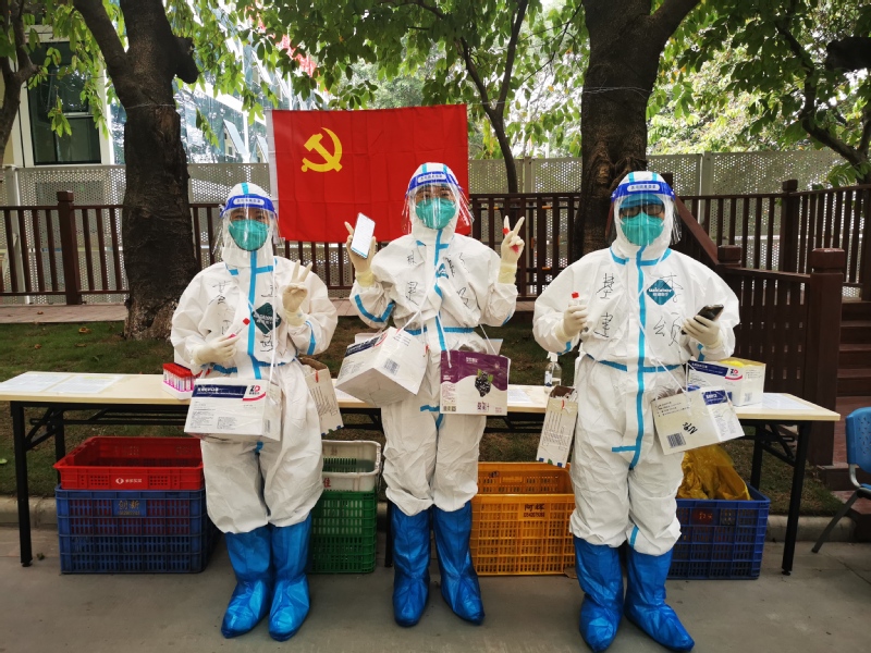 全心投入,方显勇毅。日复一日的穿脱防护服、爬楼送饭、清运垃圾、检测核酸,每日的志愿服务总时长远远超过8小时,队员们充分发挥特别能吃苦、特别能战斗、特别能奉献的精神,上下一心,协调有序,高效运转,用严谨认真精细的态度熟练完成每一步规定动作。队员中有的需要克服腰痛的困扰,休息一会后就再次选择冲上战场;有的奋战至夜幕降临,拖着疲惫的身体回到办公室处理白天留下的工作直至深夜;有的为了不让汗水阻挡视线,影响工作效率,自己提前叠好厚厚的卫生纸夹在额头和防护帽之间......队员们用一点一滴、实实在在的行动和付出确保各项任务顺利完成,奋勇争当“红色先锋”。