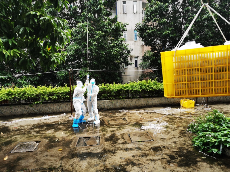 巧思妙招,精准服务。在完成每日工作后,队员们都会进行复盘,交流心得,碰撞出更好服务学生的金点子、小妙招。例如为了给送餐、核酸检测提供更准确的人员数据,队员提前上门摸查人数,将宿舍人数信息张贴在门口。为了减轻队员的送餐负担,突击队发挥专业优势,在顶层安装滑轮,利用滑轮为高层学生送餐和物资。“滑轮送餐”经过反复调试和确认,安全性得到有效保障,逐步推广到其他楼栋,志愿者们都纷纷表示:“滑轮送餐省时省力,可以减少不必要的损耗,留下力气,干更多的活。”特殊的送餐方式同样得到了学生们的关注和好评,纷纷拍下小视频,让滑轮成为了新进“网红”,通过送餐的“高科技狠活”,让学生感受到志愿者们切切实实的关爱,也为枯燥的隔离生活带来了乐趣。