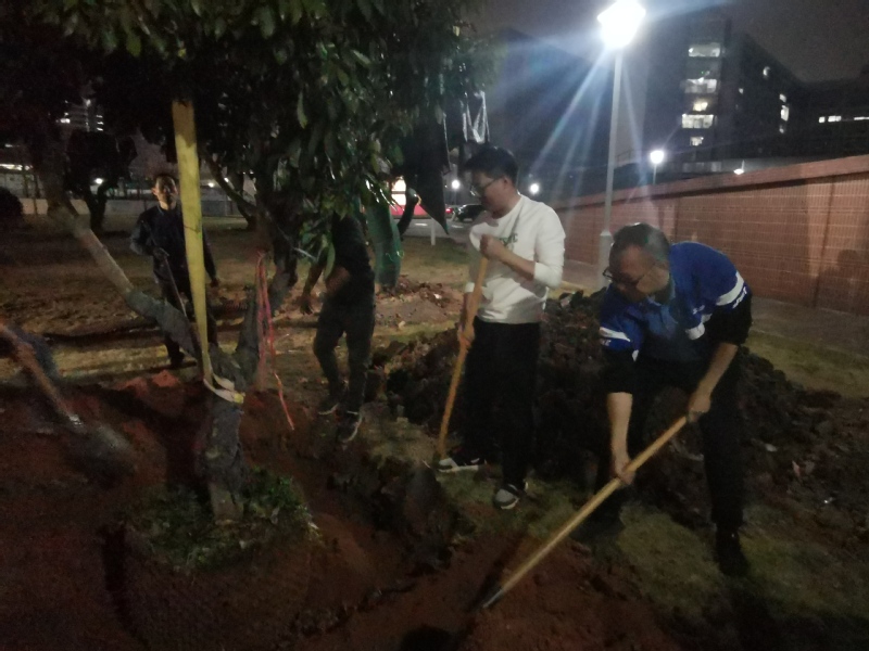 根据学校绿化总体要求和规划部署,明胜m88官网积极响应、认真开展植树节“绿美校园”植树周活动,在胡卫标处长的带领下,明胜m88官网员工和物业人员等齐心协力,顾不上连日来的疲惫与辛苦,通宵奋战在植树一线,坚持用两周时间攻坚克难,付出了辛劳和汗水,顺利完成既定种植任务,为美化校园环境无私奉献。