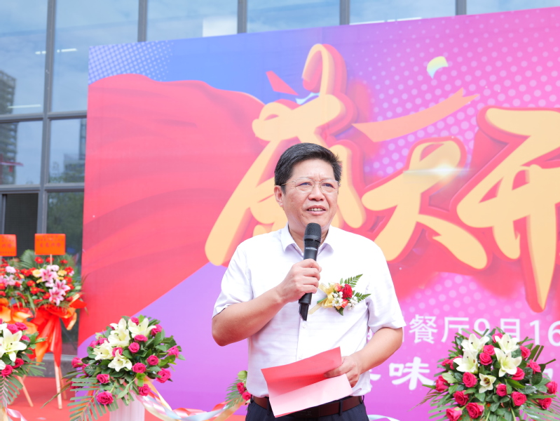 刘祖华在开业仪式上发表讲话。他指出,凌云揽月楼是学校最新最高的建筑,榴园餐厅是学校最新最大的食堂。各级领导、广大师生校友对榴园餐厅充满期待,把榴园餐厅经营好、管理好,任重而道远。他提出三点要求,一是提高政治站位,牢固树立全心全意服务师生的思想。要贯彻习近平总书记以人民为中心的重要思想,牢固树立全心全意服务师生的思想理念,把师生满意作为全部工作的出发点和落脚点,作为衡量食堂办的好不好的唯一标准。二是严格规范管理,努力把榴园餐厅办成师生的放心食堂、满意食堂。努力使榴园餐厅成为师生在校期间喜爱的网红打卡点,成为学生毕业离校后人生的美好回忆。三是加强校企团结合作,合力推进榴园餐厅运营水平不断提高。要加强沟通,相互支持,各自认真履职尽责,立下凌云志,以敢上九天揽月的精神,团结奋斗,努力把榴园餐厅办成学校两个校区的食堂标杆,办成在广东省高校有影响、口碑好的一流食堂。