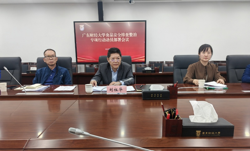 为深入开展好学校食品安全排查整治专项行动,刘祖华提出了三点要求,一要提高政治站位,充分认识食品安全工作的重要性。高度重视校园食品安全工作,层层压实食品安全责任,凝聚工作合力。充分认识到开展本次专项行动的重要意义,增强做好校园食品安全工作的紧迫感和责任感。二要坚持问题导向和目标导向相统一,深入开展食品安全排查整治专项行动。既要开展一次拉网式、地毯式排查,重点排查学校食堂承包经营行为、学校食堂卫生管理和条件保障、学校食堂卫生管理和条件保障和学校食品安全管理工作机制,建立台账,逐一整改,又要紧紧锚定目标任务, 对学校食品安全领域各项工作全过程、各环节,进行一次系统的大梳理、大整改,着力解决突出问题,建立健全长效机制,进一步规范食堂食品安全管理。三要严密组织实施,确保专项行动各项工作部署和要求落到实处。要充分利用寒假时间,明确各部门职责分工,组织专门力量,全面排查风险隐患,认真梳理问题漏洞,结合学校食堂特点,抓住核心要素和关键环节,落实落细工作举措,全面提升学校食品安全保障水平;各食堂要习惯在监督下开展工作,养成自觉接受监督的习惯,将思想与行动统一到上级部署要求上来,深入开展校园食品安全排查整治专项行动,切实推动学校后勤健康发展,为广大师生提供优质的后勤服务,为学校建设大湾区一流财经大学提供强大的后勤支撑。