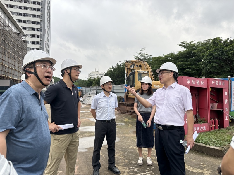 在体育综合馆工地现场,陈国栋详细了解工程进度、施工质量控制等情况,逐一询问功能空间规划安排、场馆使用和功能布局、具体需求和预期效能。