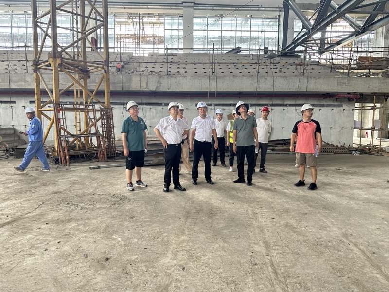 7月26日下午,校党委书记郑贤操带队深入明胜m88官网在建工程施工一线,督导检查近期体育综合馆、体育公园建设情况,了解现阶段存在的问题和困难,并为下一步工作指明方向。基建处处长冯东海、明胜m88官网处长胡卫标及相关人员陪同参加了本次检查。