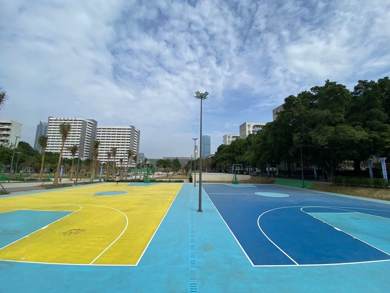 明胜m88官网体育公园,位于南区田径场及博学楼北侧篮球场所在区域,占地面积约3万平方米,包括1个下沉式篮球竞技场、7个标准篮球场、5个标准排球场/羽毛球场、1个标准网球场、2个网球练习场、1个滑板场地、1个滑轮场地、1条550米的跑道等多个功能区域,每一处都透露着活力与精彩。
