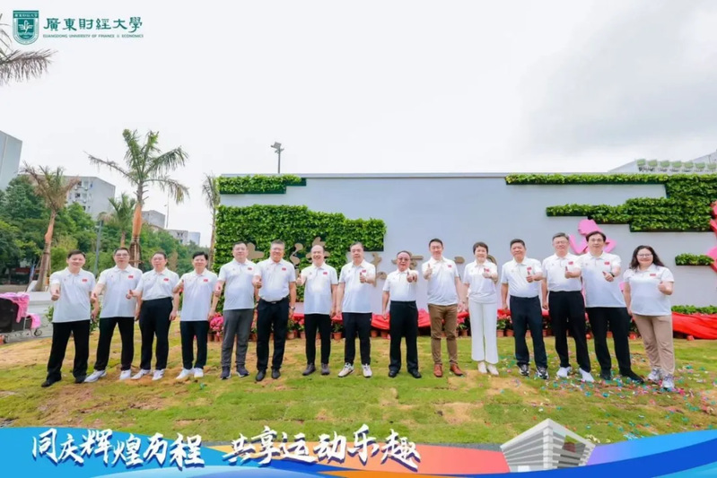 校长于海峰向陈俊董事长及黄慰宏、叶亚娟校友对学校发展和体育事业的关心支持表示衷心的感谢。校党委书记郑贤操为陈俊颁授捐赠证书、“慈善大使”铭牌赠送纪念品。陈俊表示,大湾体育公园的落成,是“榴园精神”的传承与发扬。它不仅为广财学子提供了挥洒青春、勇攀高峰的舞台,更树立起一方象征奋斗与拼搏的精神沃土;这里不仅凝结了广财校友的拳拳爱校之心,也延续着大湾教育科技集团“日拱一卒无有尽,功不唐捐终入海”的理念。大湾教育科技集团的这份坚守与广财的精神高度契合,谐鸣共振。