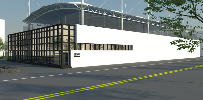 游泳馆项目总建筑面积约5000平方米(未含屋面雨棚建筑面积),主要建设内容包括室内游泳馆、屋面运动场和附楼三大部分:室内馆设标准8泳道恒温池及短道5泳道池;屋面建设4片网球场,配备雨棚、防滑地面及夜间照明设施;北侧3层附楼含更衣淋浴区、体能训练中心及特色运动空间。